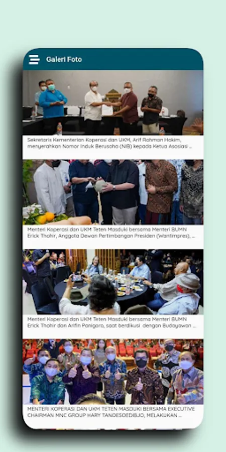 Showing photos from the Ministry of Cooperatives and SMEs in the form of galleries.