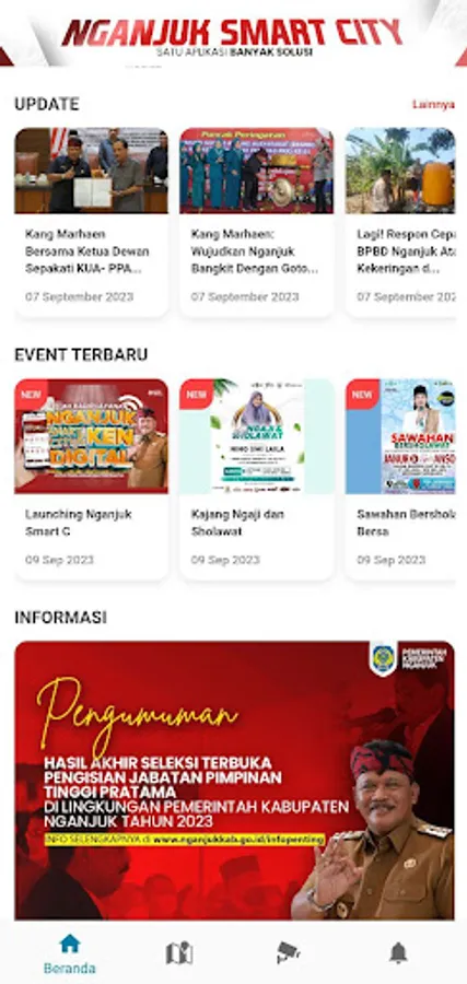 This application is a gateway that connects information from a number of applications / websites that are useful for the people of Nganjuk.