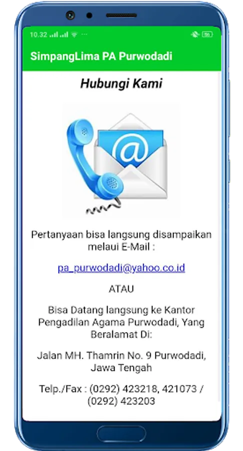 With the Semarang Religious Court SimpangLima application it is expected that the wider community can get to know and learn more about the Profile of the Purwodadi Religious Court and litigation procedures and can play an active role in providing useful advice and input for improving our performance services.