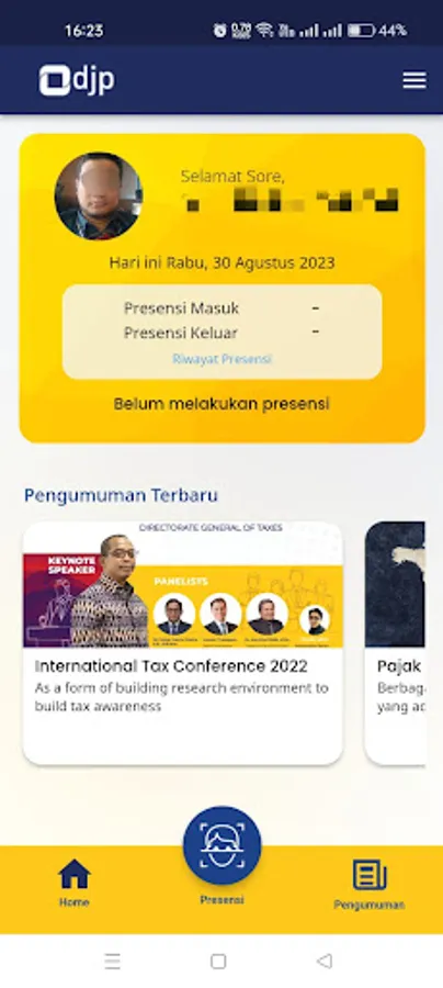 Presence recording application for employees of the Directorate General of Taxes uses face recognition and geolocation verification features.
