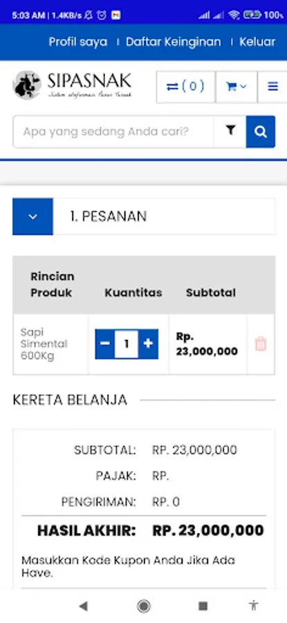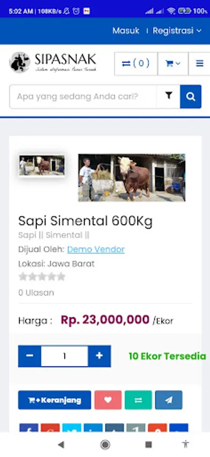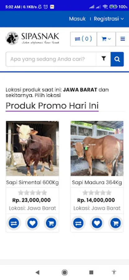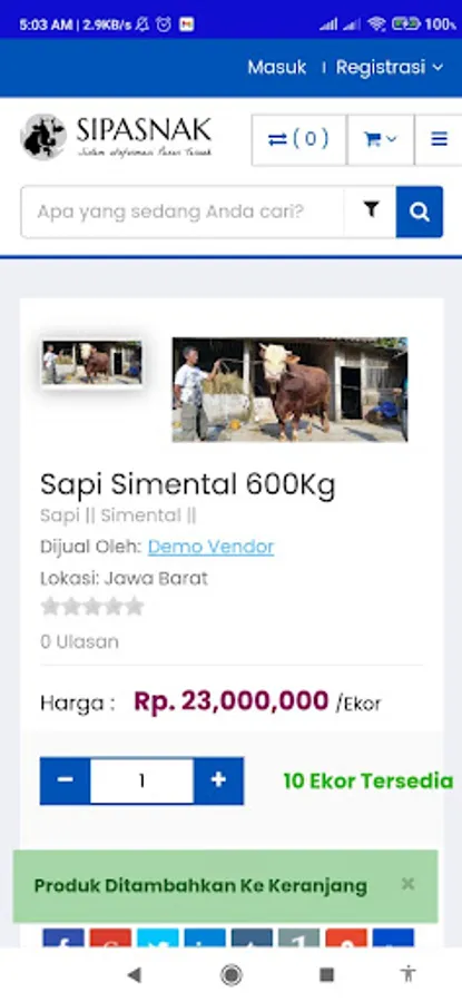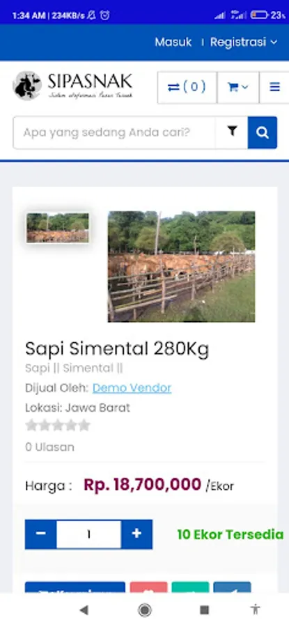 Online Livestock Market is a web and mobile-based Information System that aims to build a price transparency system, become a supporting system for data collaboration and information on the existence of livestock markets in the regions as well as digital marketing features for livestock products and build a livestock market towards a modern livestock market based on utilization. information Technology.