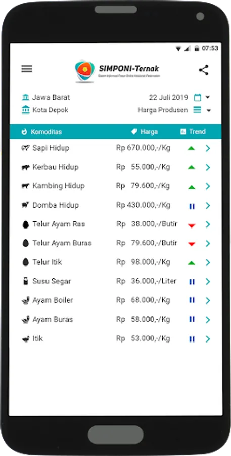 A system capable of presenting information on livestock commodity prices automatically as needed, managed by the Livestock Market Information Services officer in the field and the information can be accessed by the Head of the Ministry of Agriculture, Animal Husbandry Society, and academics