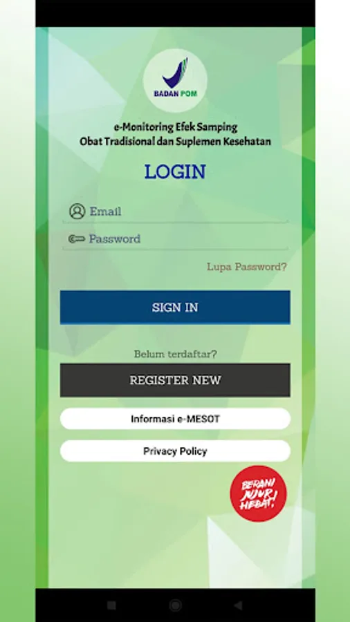 POM has an electronic OT and SK side effects reporting system through the web-based OT and SK Side Effects Reporting. However, along with technological developments, it is necessary to develop applications to follow the latest technology in order to expand the reach of users and improve the ease of reporting OT and SK side effects through the creation of e-Monitoring applications for side effects of traditional medicines and health supplements (e-MESOT) which are based on Android. has advantages in terms of practicality, flexibility of application features and popularity in Indonesian society. These advantages can be utilized to accelerate access to reporting and follow-up on the side effects of OT and SK in order to strengthen public protection.