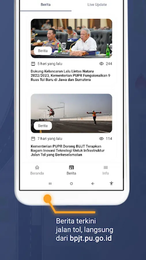 Tol Kita Application - BPJT is an application that functions as a forum, which makes it easier for toll road users to find information related to toll roads through mobile apps.