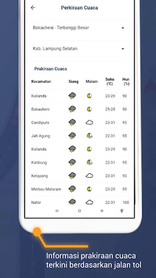 Weather Forecast - allows users to know the weather forecast that occurs on selected toll roads