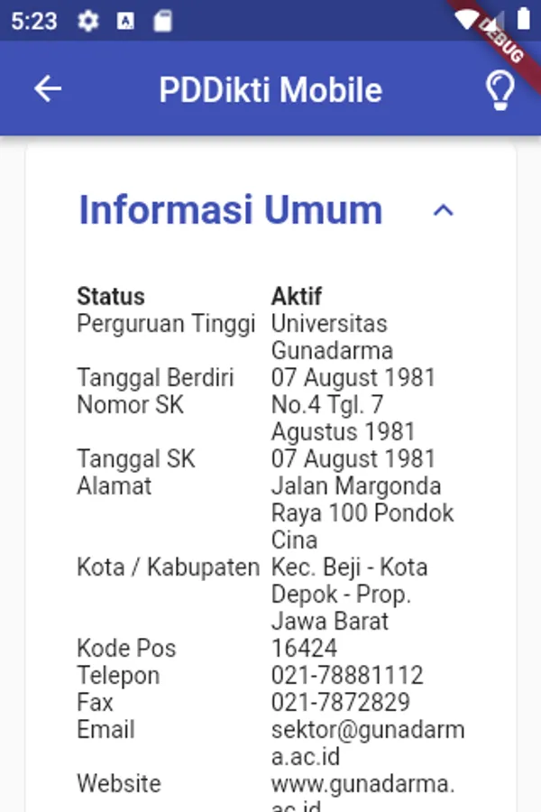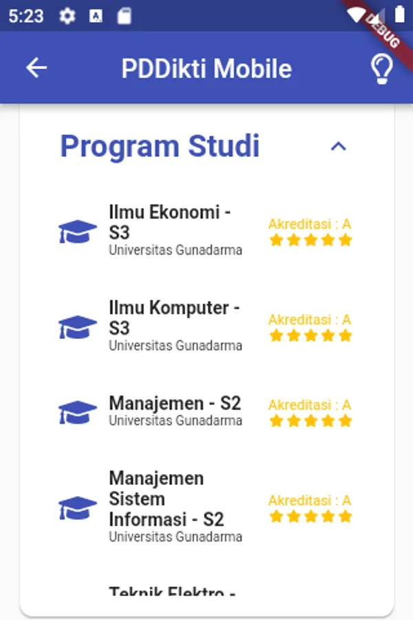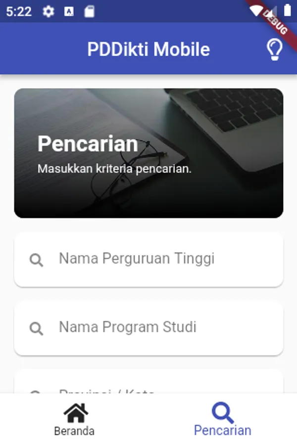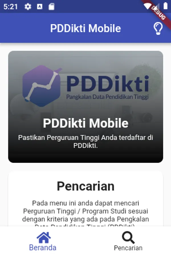 PDDikti Mobile is an application made by the Center for Data and Information The Ministry of Research, Technology and Higher Education functions to search for university data as a reference for university information and provides convenience for users - especially for prospective students - who want to access information about universities wherever and whenever.