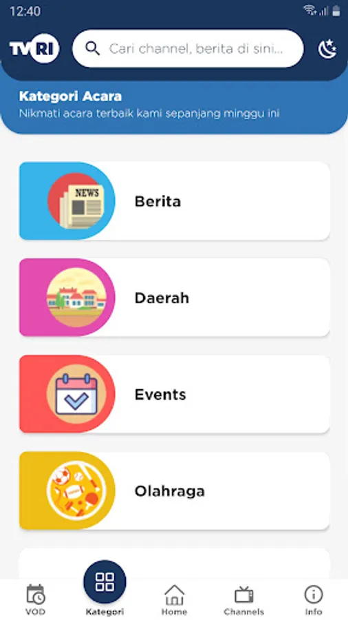 TVRI now presents News, All Channels Live Streaming and VoD (Video on Demand) services in one application that you can download for free on your device!