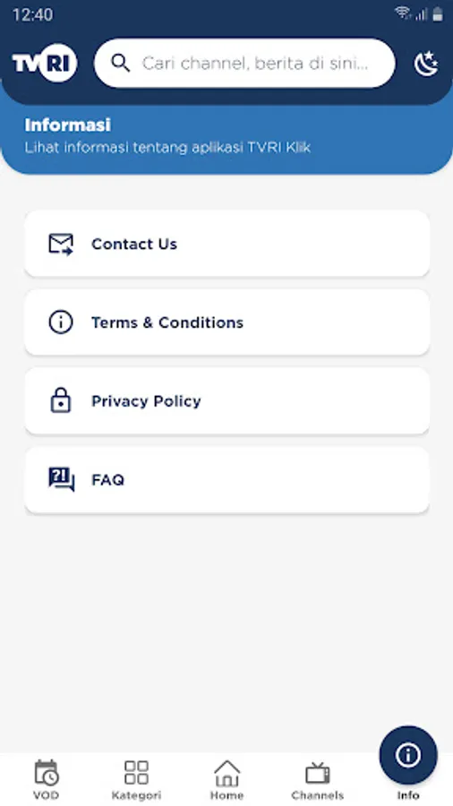 With just one touch, you can watch TVRI shows that educate and educate the nation with various programs such as children's shows, news, culture, sports.