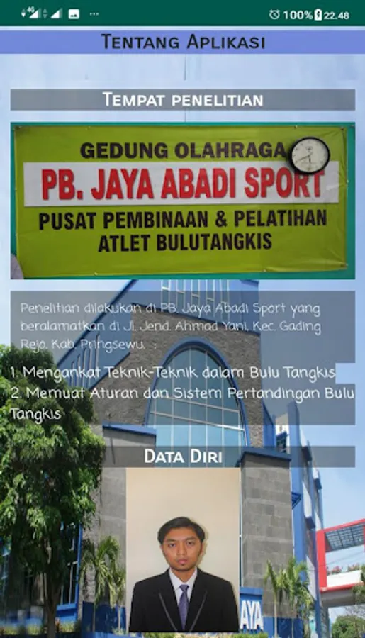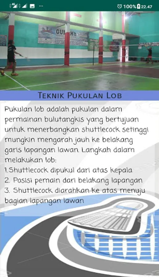 not only that there is also a history of badminton and the history of some badminton players both men and women, fill in interesting content so as not to get bored in learning techniques, this application is aimed at the general public who want to learn and want to know more about badminton .