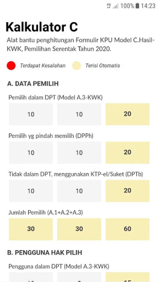 Calculator C is a tool that can be used by all election / election stakeholders starting from the KPU - General Election Commission, Bawaslu - Election Supervisory Board, ad hoc components (PPK, PPS, Panwas, and PPL), as well as candidate witnesses and parties participating in the Governor's Concurrent Election. / Regent / Mayor of 2020.