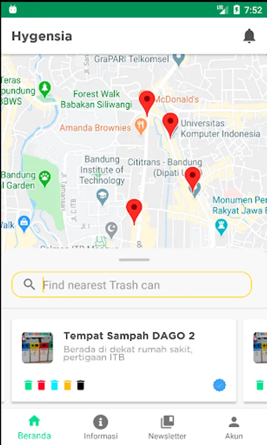 The nearest trashcan search application and also educates us more about rubbish. download the hygensia and register the trash can around you, and create a cleaner environment.