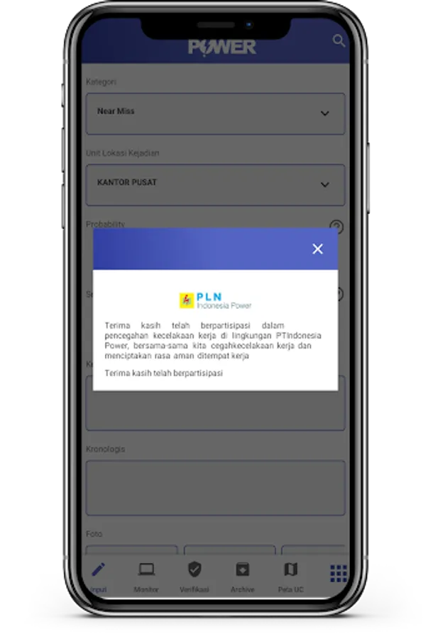 The Nearmiss application was created with the intention of making it easier to report incidents that have the potential to cause accidents. By using an Android-based mobile device, reporting can be immediately communicated to the SPS unit team, which is expected to speed up response and further action.