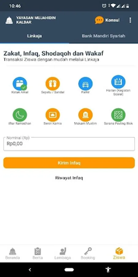 Mujahidin Apps Foundation is a digital platform of the Pontianak Great Mujahidin Mosque which has the main features of digital Infaq and other services