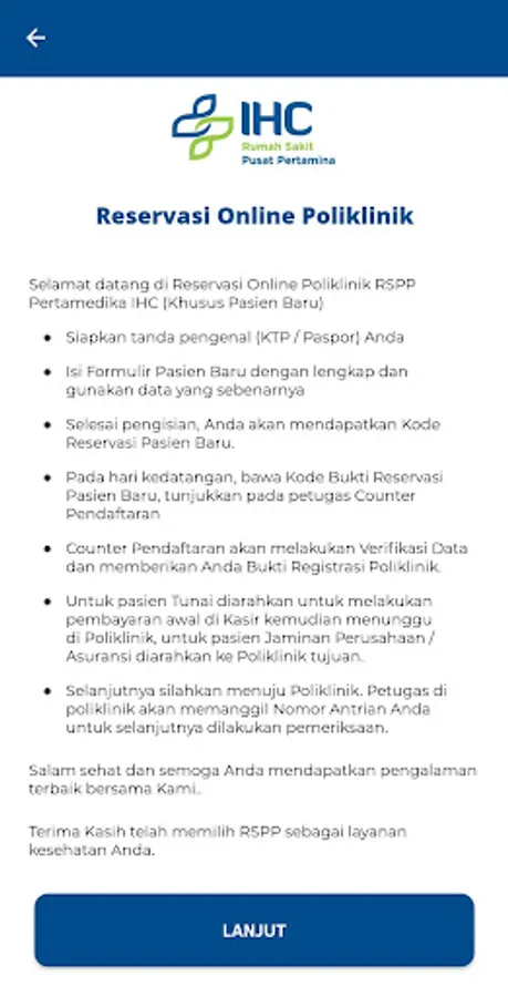 A solution for patients to make service reservations at Pertamina Central Hospital online mobile.