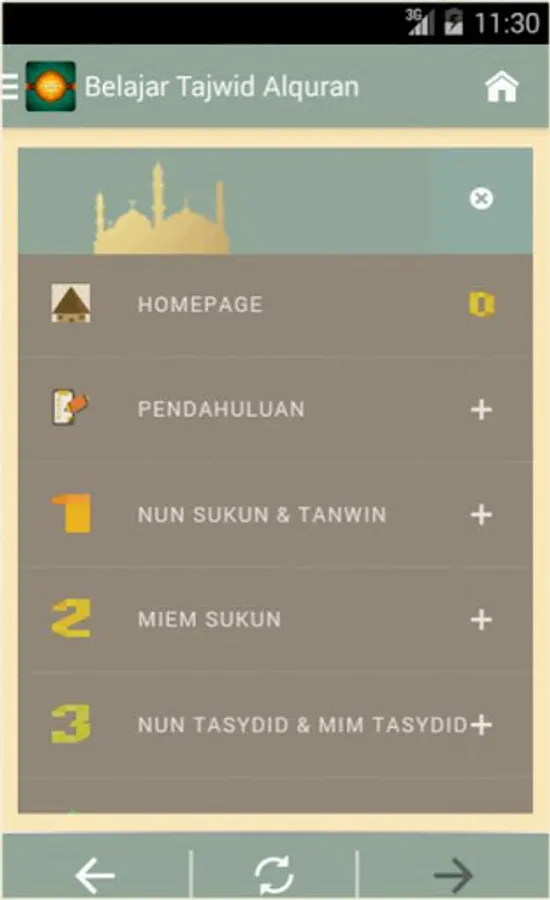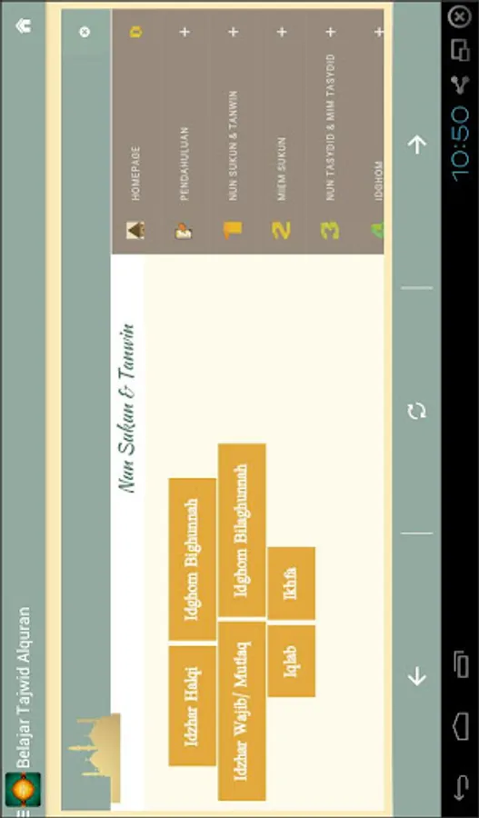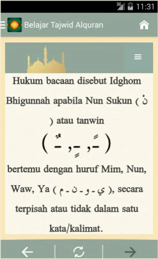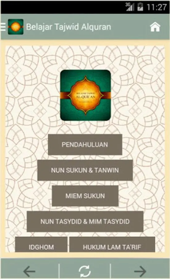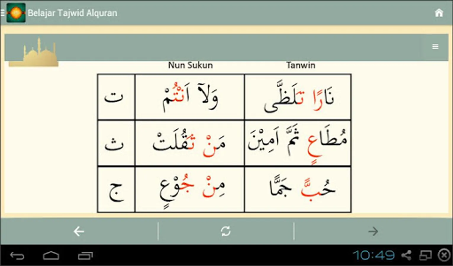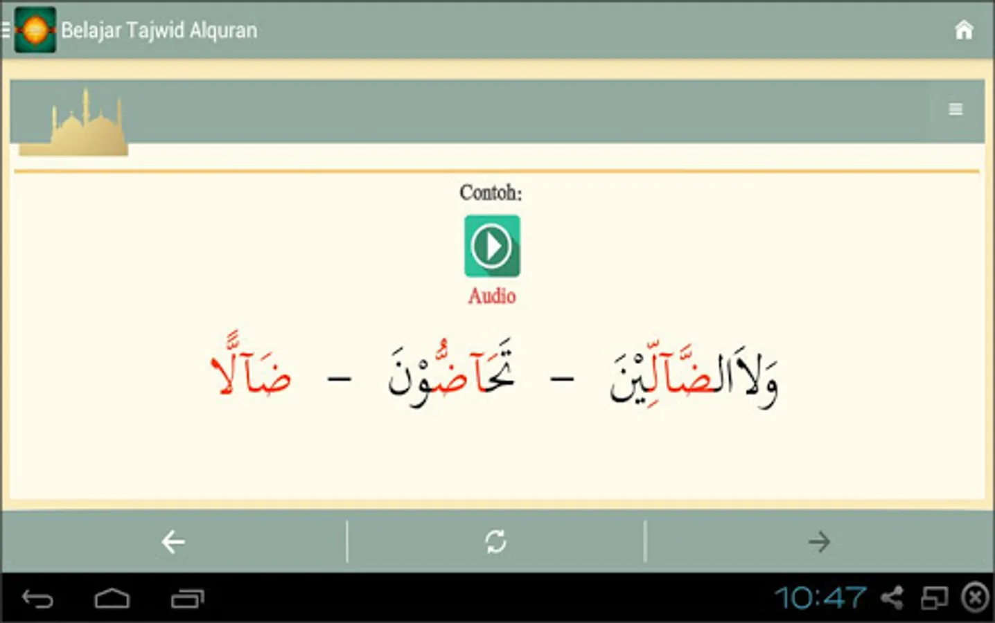 Tajwid is a science that is used to figure out how to actually ring the letters in the Qur'an. By studying Science Tajweed recitation of the Qur'an expected us to be preserved from error read. And that's why this application is present to allow you to learn how to read the Qur'an properly prepared by the method of learning tajwid Indonesia.