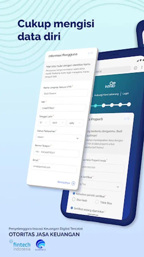 infinID membantu Anda untuk mendapatkan fasilitas Dana Properti Multiguna dengan jaminan sertifikat rumah atau properti lainnya dari Lembaga Jasa Keuangan Resmi. Akses dana mulai dari 100 juta Rupiah atau hingga 50% dari nilai rumah.