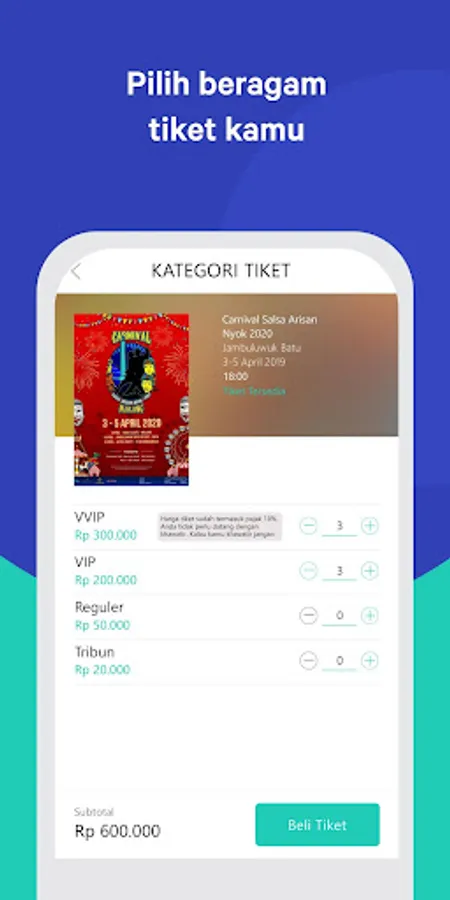 Platforms that are ready to support event organizers from EVENTku Customer Apps, EVENTpos, EVENTscn, EVENTpal. a mobile application engaged in the entertainment event. My Event is an online ticket sales and event marketing service that will be organized by the event organizer. EVENTku platform specifically provides sales and purchase services for entertainment events which are divided into several categories. This platform is made easy for event organizers to distribute ticket sales online and see how the results of ticket analysis are distributed. As a connoisseur of event lovers, it's also easy to choose your favorite shows and buy tickets online only with my EVENT platform. EVENTku realizes in distributing entertainment program tickets that need to spread its wings by cooperating with potential traders, so that event lovers have the space to choose entertainment program ticket purchase options and of course greatly help event organizers to distribute tickets. This means that data filtering for check-in on the day of entertainment events that have taken place is integrated both online and offline. Therefore the EVENTku service platform is easy to use, integrated from the system, guaranteed safe in various ways, able to accommodate a lot of data, trusted service management, and secure data safeguards.