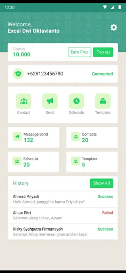 Dengan aplikasi ini kita bisa mengirimkan ucapan ke banyak teman/nasabah kita sekaligus secara personal dengan otomatis menambahkan nama teman/contact kita. Kita bisa mengatur kapan di kirimkan pesan kita ini.