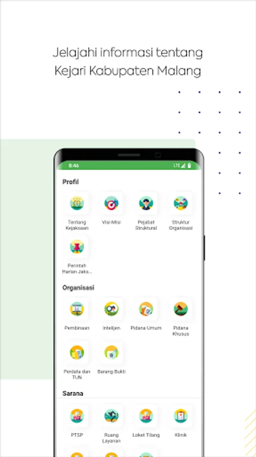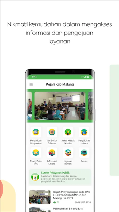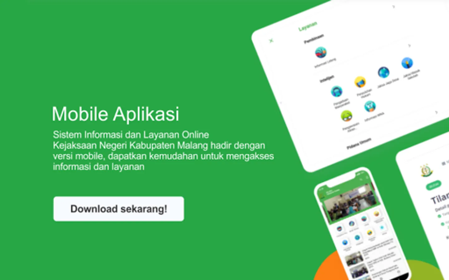 This system was specifically ordered by the Malang District Prosecutor's Office to Irit.io. The information system and online services of Kejari Kab Malang come with a Website version through https://kejari-malangkab.go.id and an Android Mobile version.
