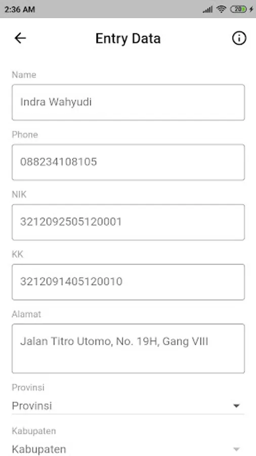 Entry data berupa penginputan data diri kepesertaan oleh petugas.