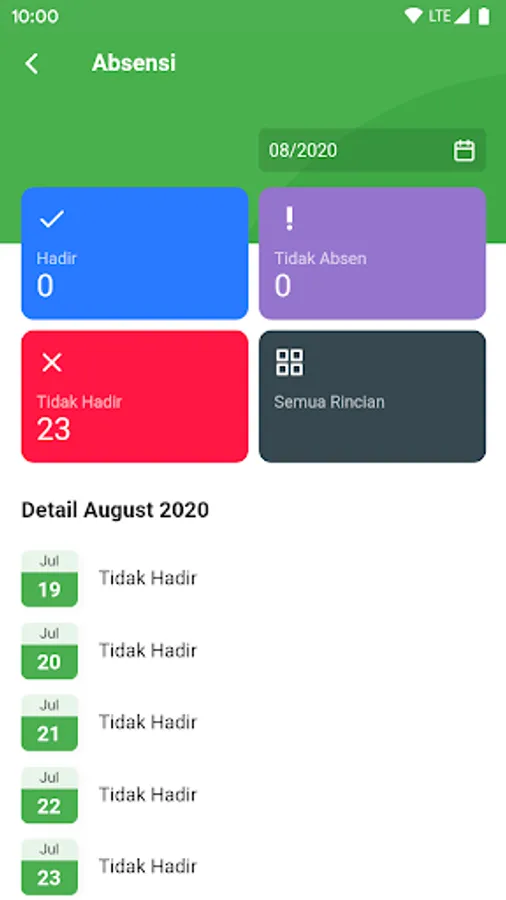 Salaries, allowances and meal allowances will be displayed in the form of a total amount per month. The detail of the piece is displayed according to the category of the piece such as the absent piece, permission and leave. We show meal details in a different table, tap on the 'Dining Money' menu and a nominal table, number of days and total meal allowance will appear.