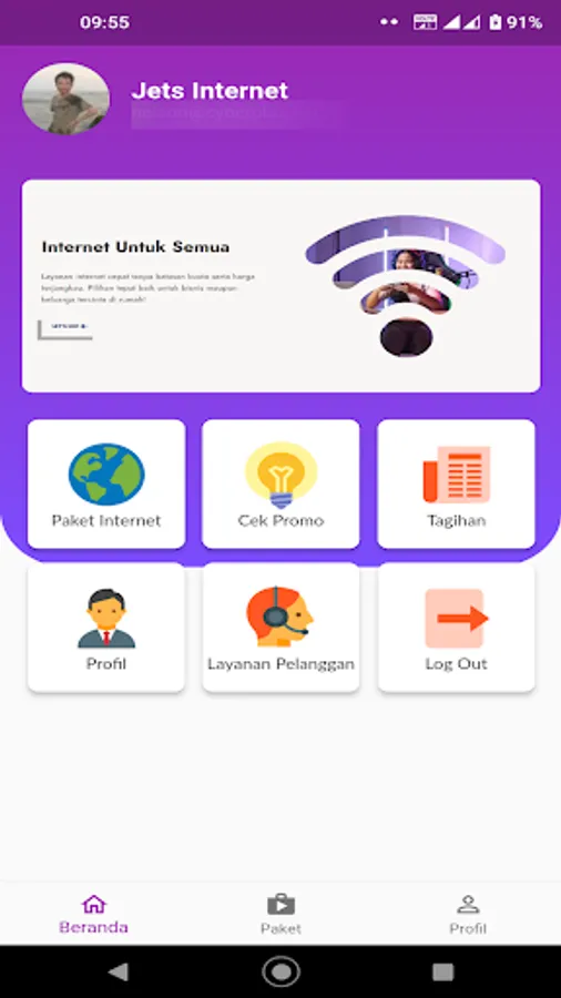 Application created for the purpose of making it easier for internet service users from Jets Internet to make internet subscription bill payments and apply for technical support.