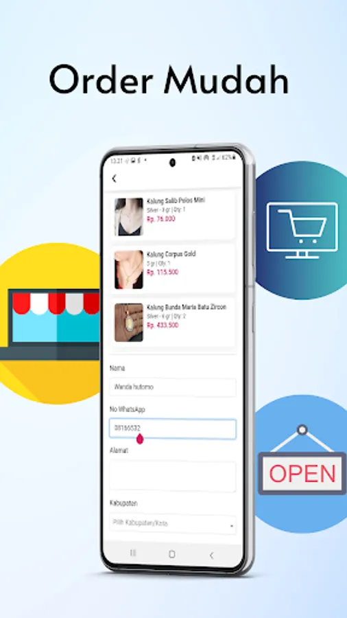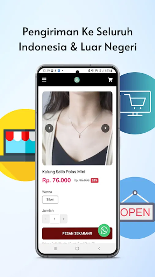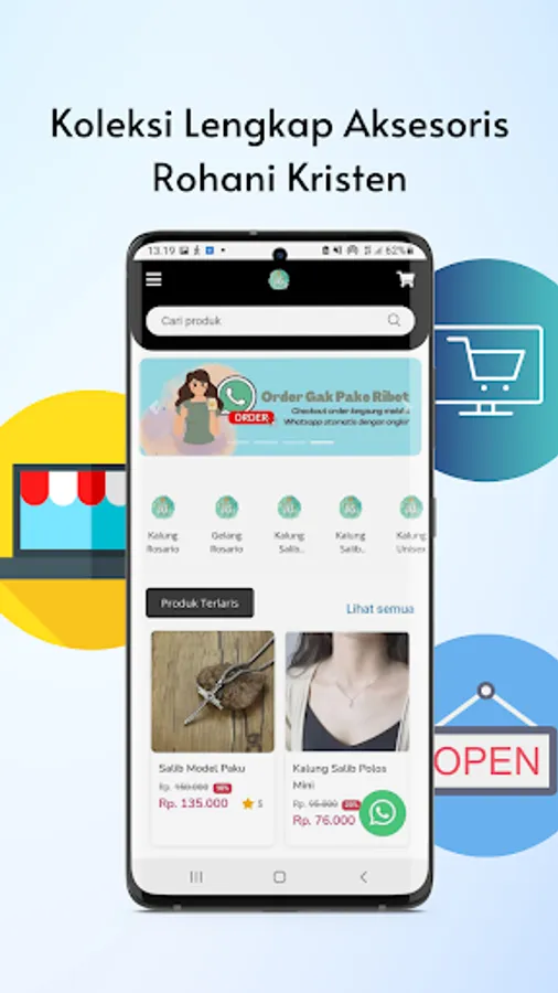 Selling various accessories such as cross necklaces, cross bracelets, Catholic rosaries, statues, t-shirts and others.
