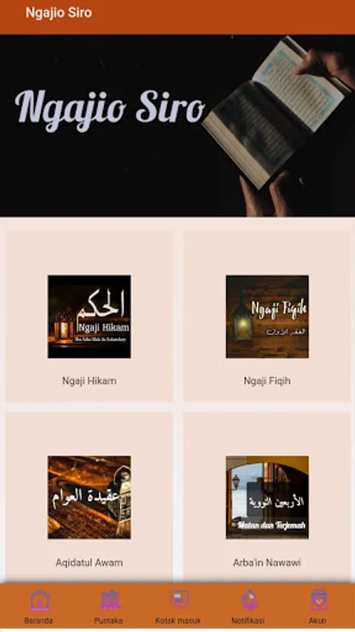 Ngajio Siro is an Islamic religious learning application for beginners (laymen), the content in the application contains basic material about fiqh, hadith, faith and tasawuf.