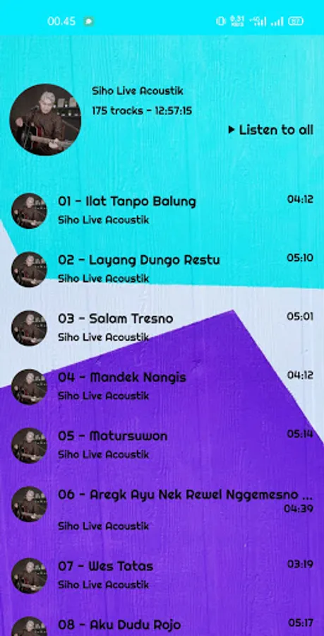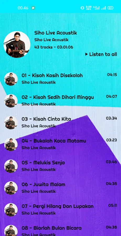 This application contains the most complete and updated baper music from Siho Live Acoustic. Siho Live Acoustic will add the latest songs without you having to upgrade the application.