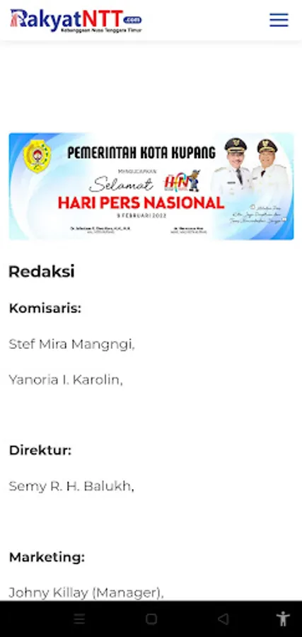 RakyatNTT.com has a vision to be the proud media of NTT and to be a distributor of information with the widest network in NTT. Therefore, currently the management of RakyatNTT.com has placed personnel in the districts in NTT to obtain important information from each region in NTT.