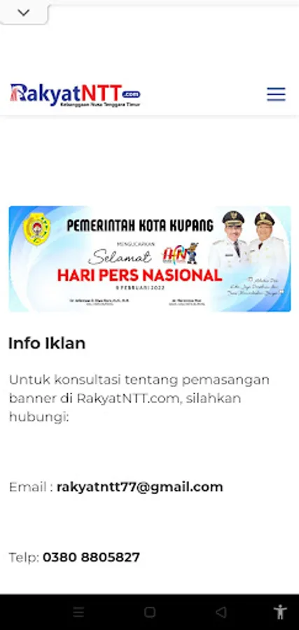 RakyatNTT.com in real time provides up-to-date information about politics and government, economy and business, law, education, health, tourism, technology, lifestyle, literature, religion, sports, entertainment, to interesting photos and videos about NTT. In addition, each district has a special rubric to update information in each area.