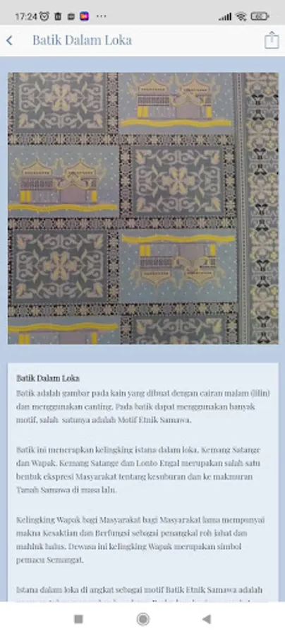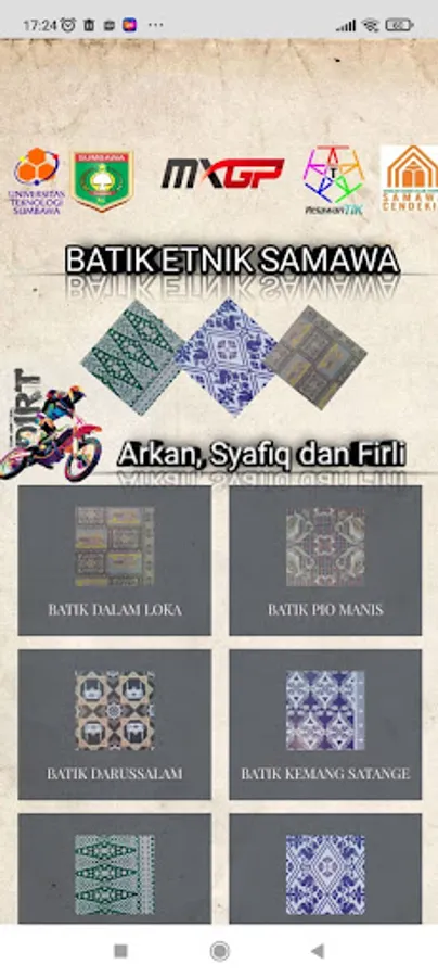 Samawa Ethnic Batik application that displays Samawa traditional clothes with Sumbawa cash batik nuances