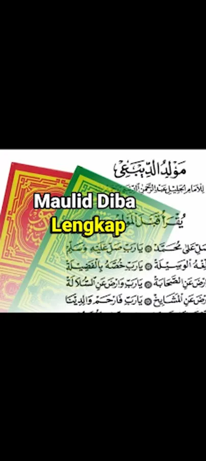 Application of the Book of Mawlid Diba' Complete. It is the Book of Mawlid by Al-Imam As-Syeikh Abdurrahman Ad-Diba'i. The meaning and contents of Mawlid Diba' are poems of praise and praise to the Prophet Muhammad SAW as well as stories and history of his life journey strung together with beautiful words or commonly called "nadhom". There are also sholawat lyrics and verses in it and occasionally interspersed with qasidah chants.