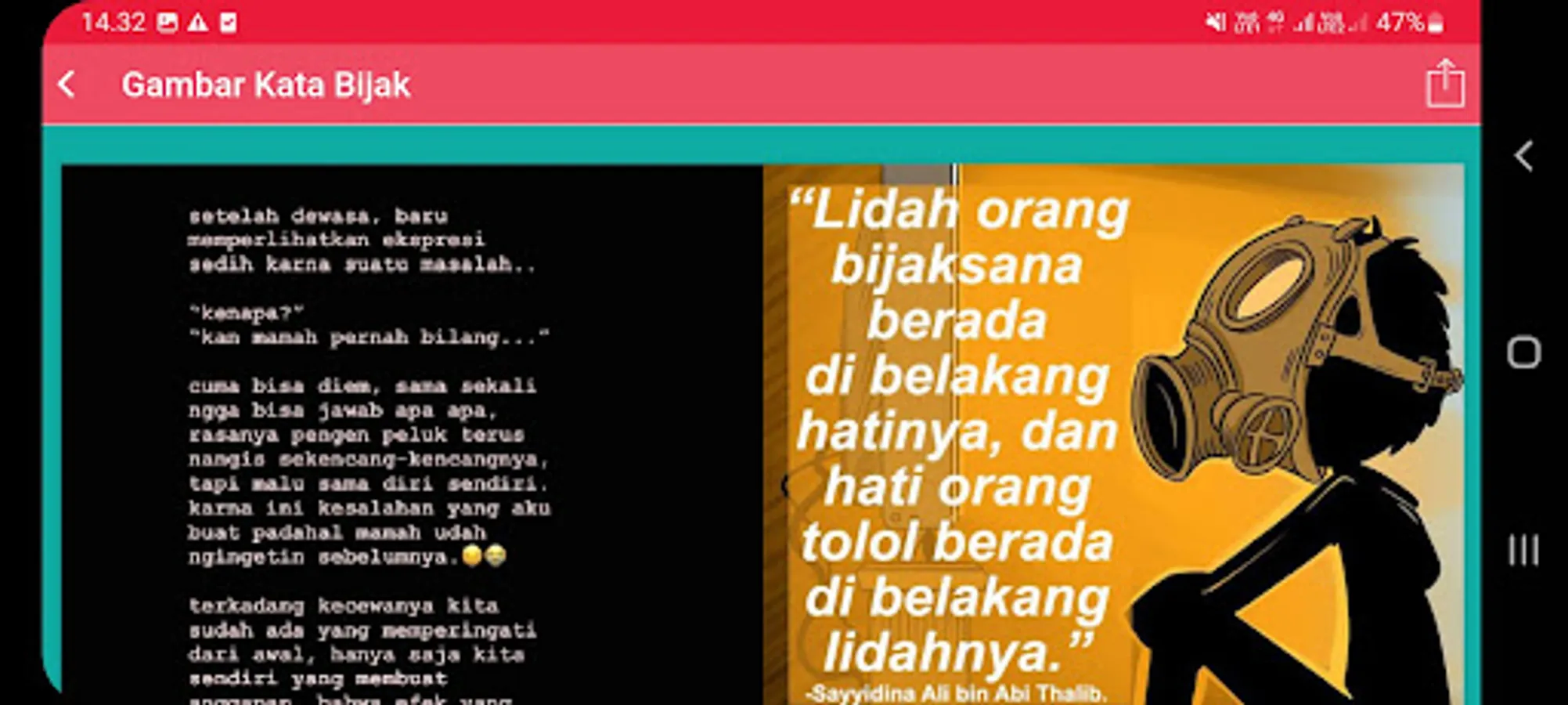 This collection of Wise Words of Life is an application that contains wise words of life and pearls of wisdom with various themes and sources that you can understand the meaning of to be used as inspiration and motivation for life. You can also stick it on a study table or mirror so you can absorb it more. So you can apply it in your daily life.