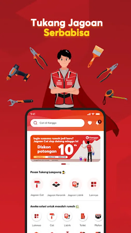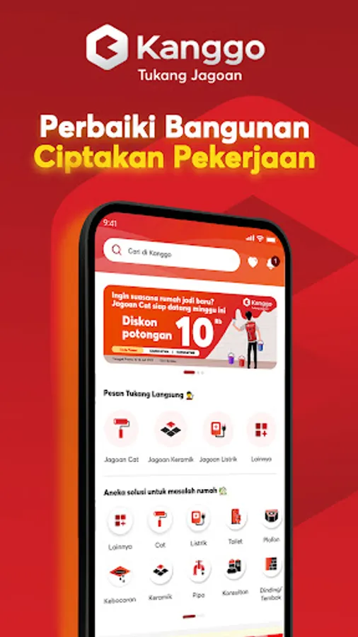 Download Kanggo, solusi untuk segala kebutuhan perbaikan bangunanmu. Jangan ketinggalan keseruan Kanggo di akun media sosial kami: