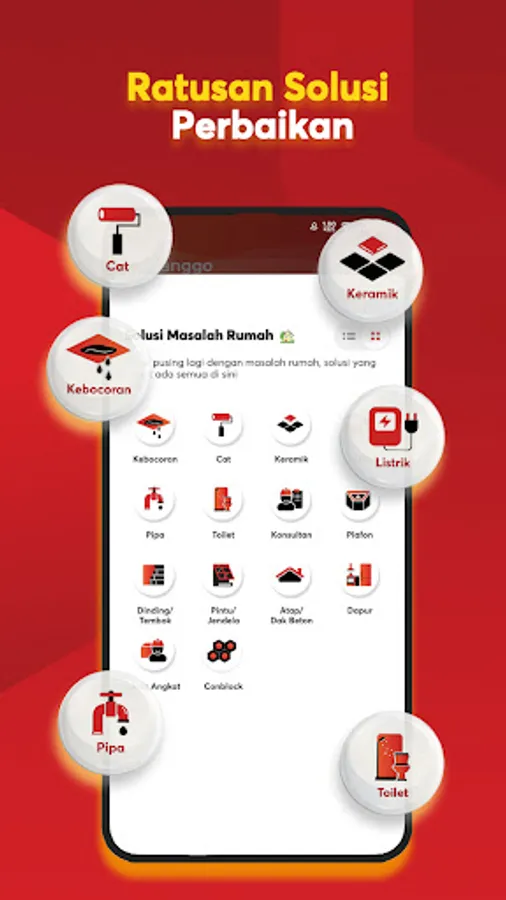 Semua kebutuhan perbaikan rumah seperti jasa pengecatan, pemasangan keramik, pekerjaan listrik, perbaikan kebocoran hingga proyek khusus seperti pembuatan kanopi dikerjakan oleh tukang terkualifikasi yang bersertifikat.