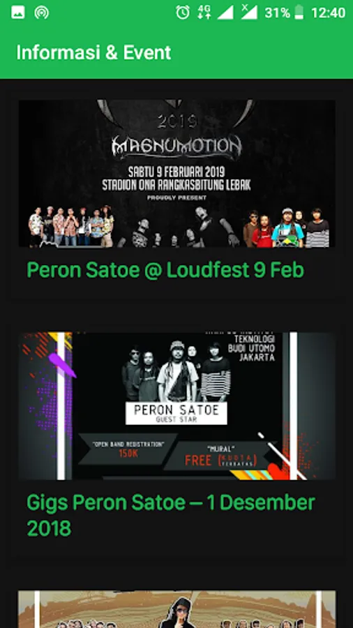 In this application you can find information about the band Peron Satoe. Not only about Band, you will get the latest information about the event and can listen to the latest songs from Peron Satoe & and this application can also be used as TICKET in the Event Band held by Peron Satoe.