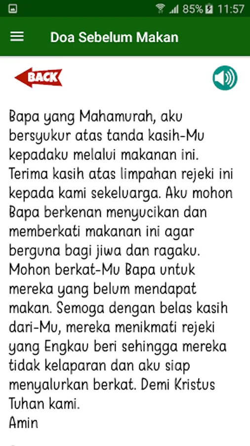 The main prayers of Catholic children and the daily prayers of Catholic children are complemented by sounds. It is a medium of learning and habituation for Catholic children. Can be used by educators and parents as learning material and habit of praying every day.
