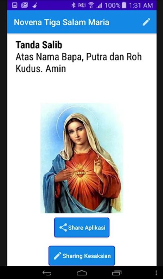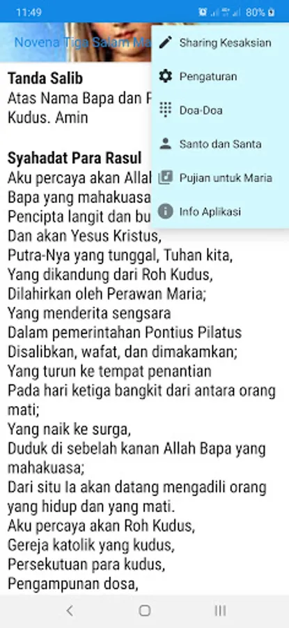 The Pocket Book of the Three Hail Marys Novena Prayers can be used as our pocket book. The Prayers of the Novena Three Hail Marys are displayed on the home page exposed in one page to make it easier for users to pray.