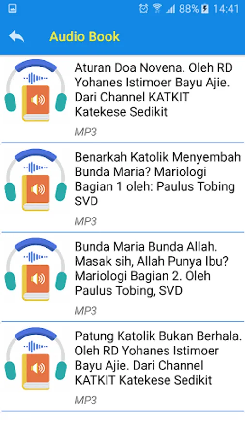 Users can listen to an audio book that contains teachings about Mary (Mariology).