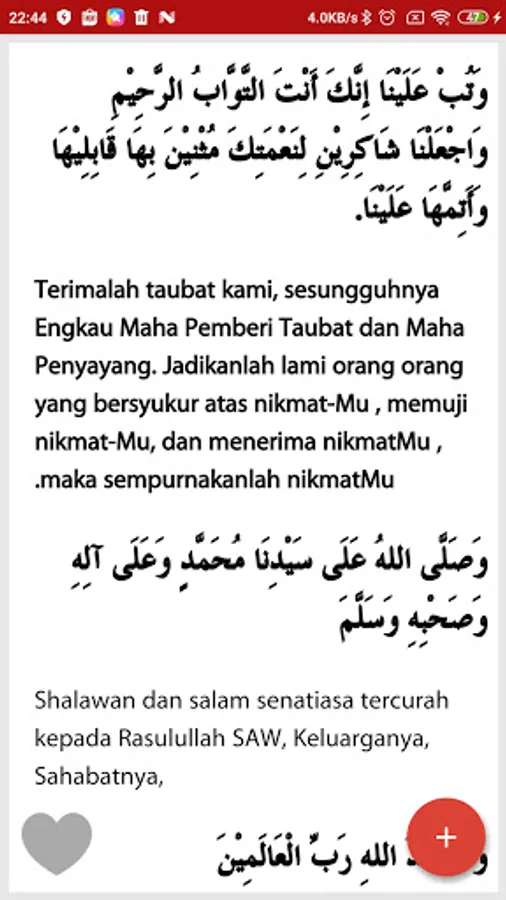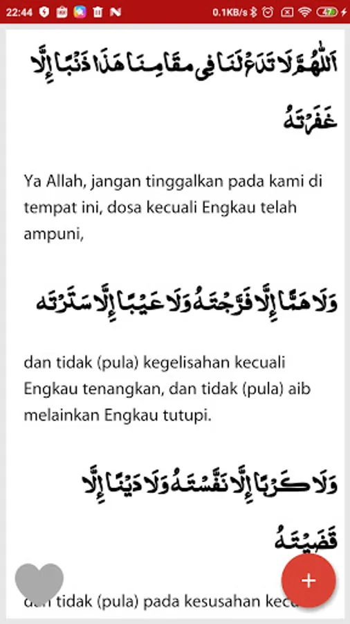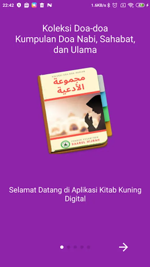 Aplikasi ini berisikan doa-doa sehari-hari dari mulai mau makan, tidur, keluar rumah, pergi haji, umroh, thawaf, puasa, zakat, dsb.
