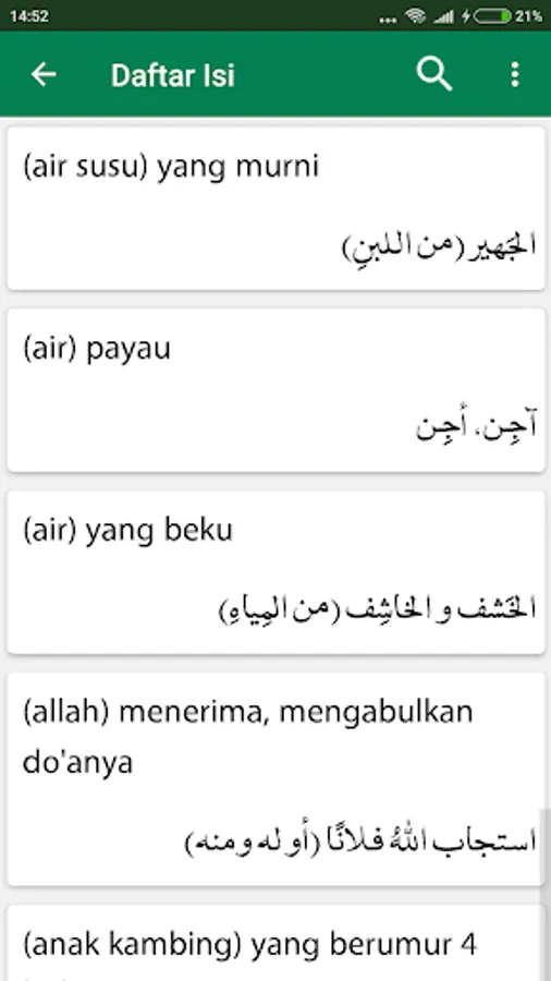 Arabic and Indonesian Billingual Dictionary is a dictionary application consisting of more than 400,000 Indonesian Arabic words or vice versa.