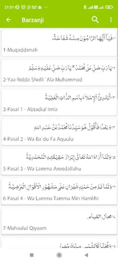 Kitab ini berisi Syair Shirah atau Kisah Kehidupan Nabi Muhammad SAW, Maulid Barzanji ini cukup lengkap dan agak panjang dibanding dengan jenis rawi lainnya.