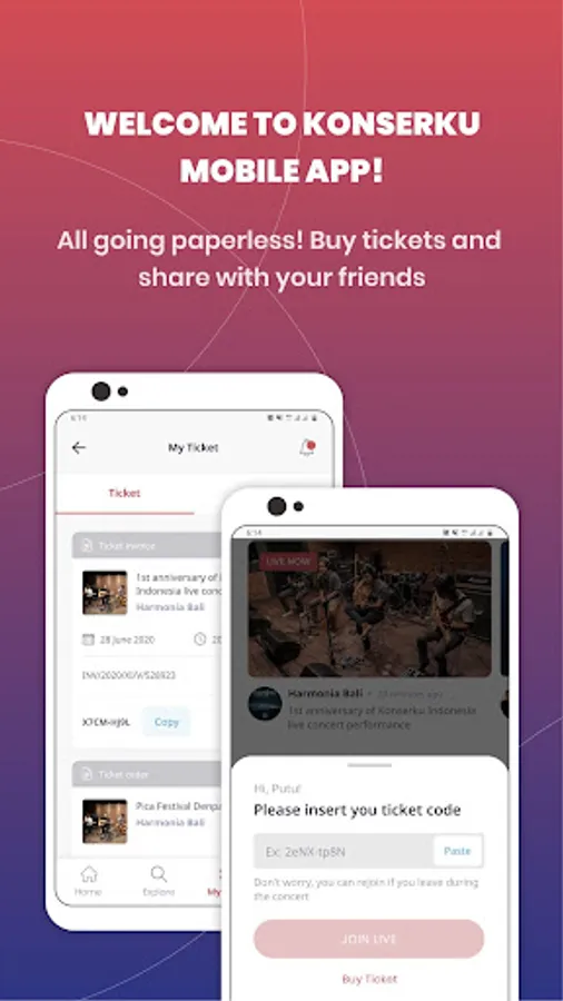 All going paperless! Buy tickets and share with your friends and use the Konserku app to watch live streaming concerts from your favorite band together.