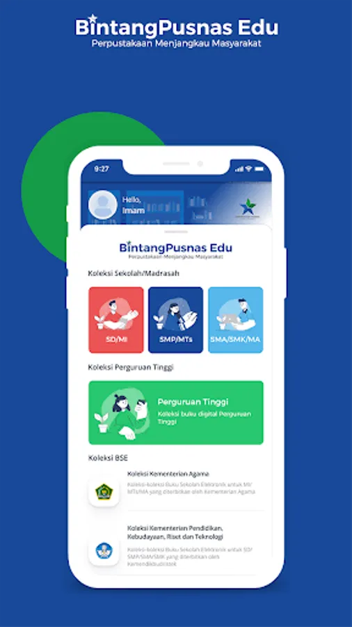 An application platform that is integrated with the PERPUSNAS super app in order to increase access and digital content of School/Madrasah and Higher Education libraries, in order to improve the quality of School/Madrasah libraries (SD/MI, SMP/MTs, SMA/SMK/MA) and Higher Education in the framework of supporting independent learning and independent campuses as well as accelerating the library in carrying out its functions.