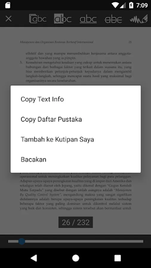 With various features such as Sentence Search, Marker Features, Quote Book Info, Quote Bibliography, Share quotes, Text to Speech and others make this Application useful for users in supporting learning activities and other activities.