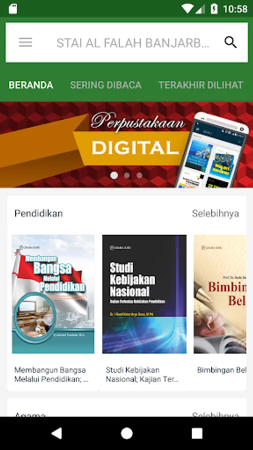 Online library application STAI Al-FALAH Banjarbaru. This online library collection is still undergoing renewal in order to meet the needs of library users.
