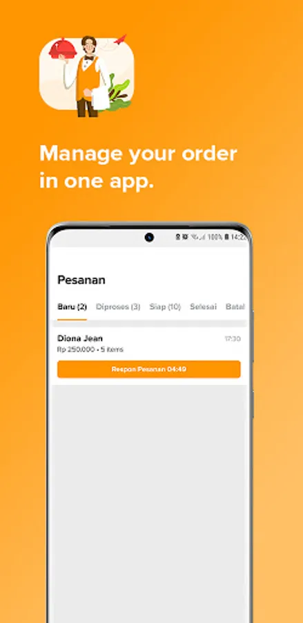 It only takes one click to accept/reject order, then you can start cooking the best meal for your customer.
