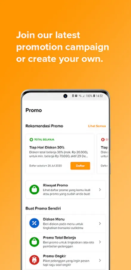 People love discounts. Boost your sales by joining our promotion campaign or creating your own.