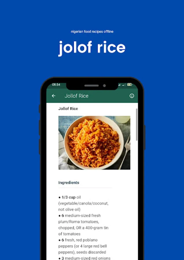 The Nigerian food recipe application is an application that provides inspiration and tutorials on how to make typical Nigerian food. This application provides a variety of recipes ranging from traditional to modern dishes that are easy for beginners to understand and implement. Users can find various types of dishes that are popular in Nigeria, such as Jollof Rice, Pounded Yam, Suya, and many more. In addition, this application also provides information about the ingredients needed and detailed steps for making each dish. The powerful search feature allows users to easily find recipes that match their preferences. This application is also equipped with a favorites feature that allows users to save recipes they like so that they can be accessed easily again.